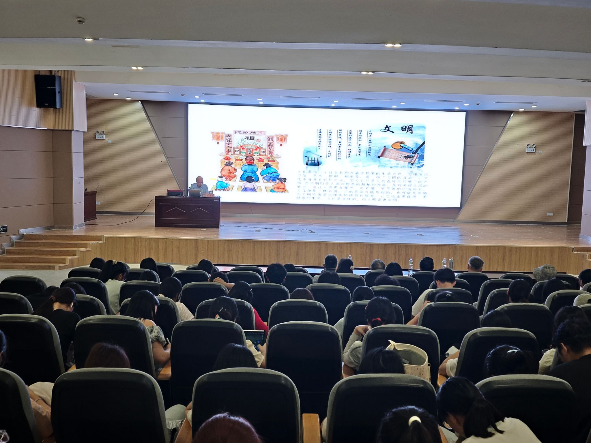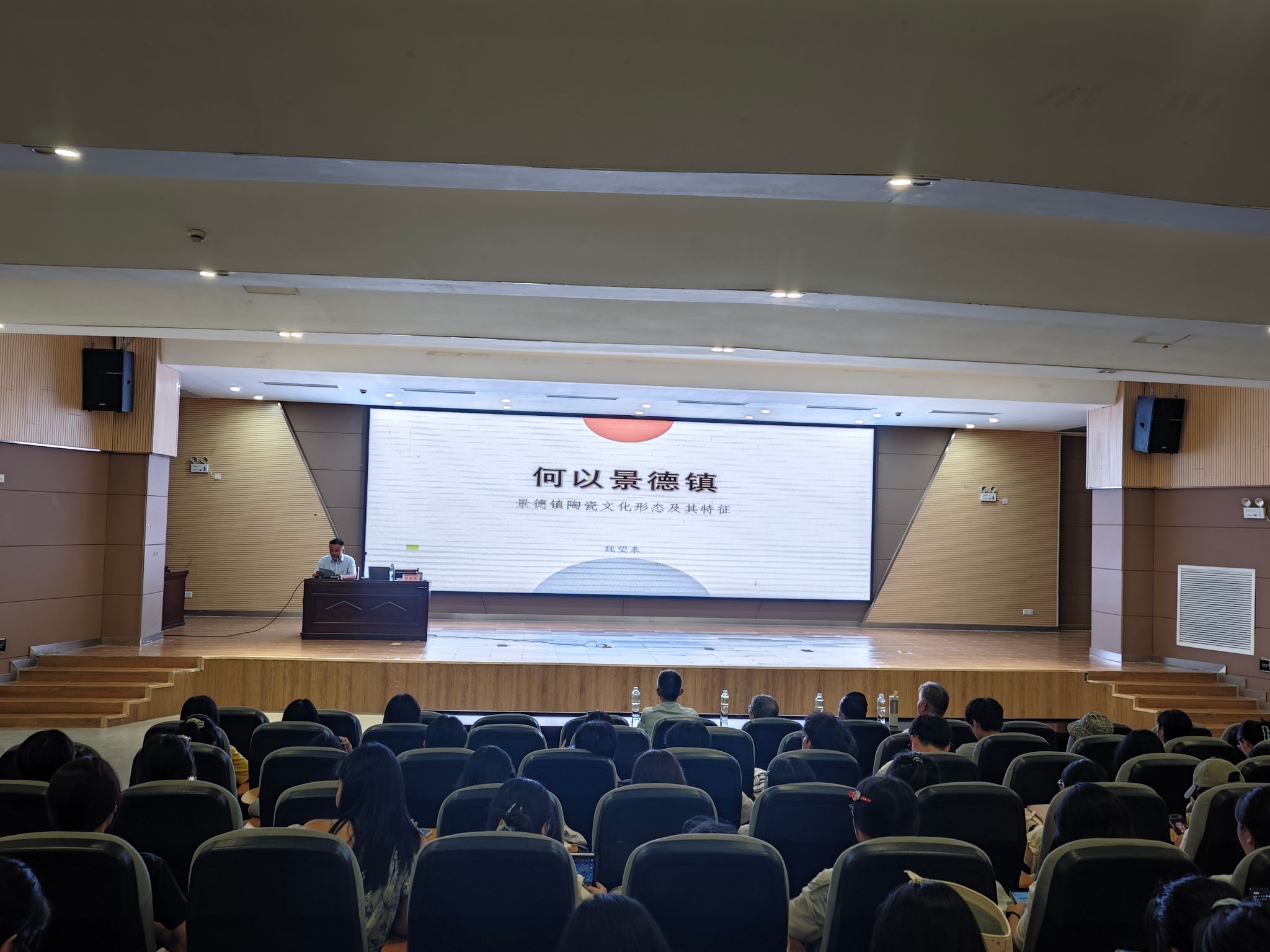 为助力景德镇市世界文化遗产申报工作,在广大青年学子中厚植传统文化根基,10月17日下午,外国语学院邀请学校关工委报告团成员魏望来教授在图文报告厅为师生开展“传承千年文脉,申遗路上有我”系列讲座之“何以景德镇——景德镇陶瓷文化形态及其特征”专题讲座。校关工委主任舒超英,副主任曹品生、蔡新安出席。外国语学院党委书记程立新、辅导员蒋念以及学生代表共计200余人聆听讲座。讲座由学院党委副书记黄华主持。